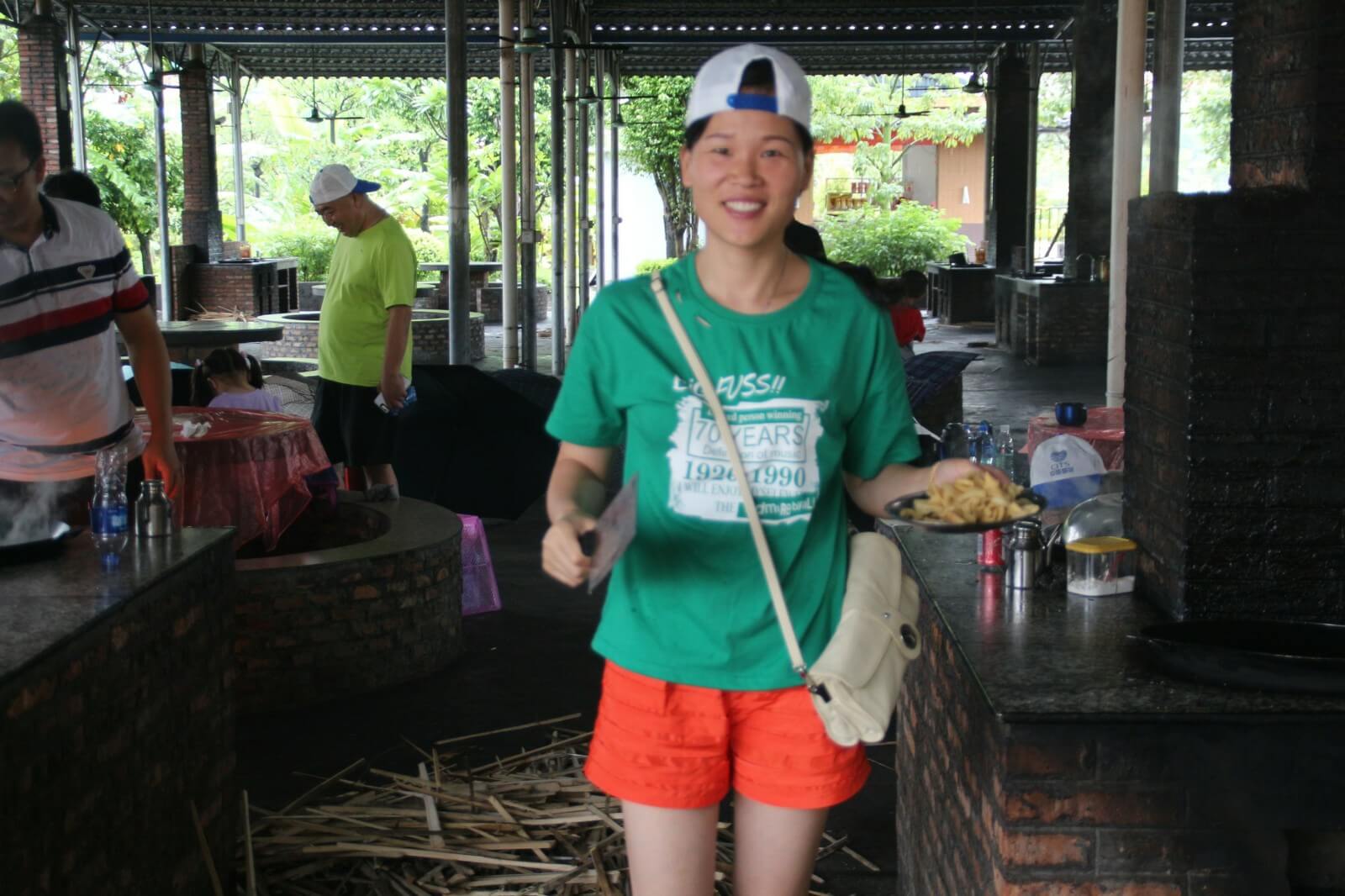 第三天,我們跟隨生物鐘醒來,相比前兩天,今天的活動時間相對寬裕,早上九點多起來吃過酒店特意留的早餐我們啟程去往郊區野炊,野炊自給自足,一切吃的都要自己動手在公司我們是職員現在我們是廚師大家都磨拳擦掌的行動起來,洗菜的、掌勺的、打下手的、添柴火的,不一會兒一盤色香味俱全的菜擺在桌上沒多久桌上已經是好幾道菜了有炒蛋、冬瓜湯、爆炒雞塊、南瓜片、炒青菜....,每道菜都富有不同的特色我拿起了手中的相機,將這一刻留在了鏡頭之中,大家相互顯無比親近,雖然只有這短短的三天。